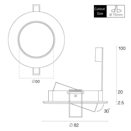 Descrizione Any Lamp Incasso Spot Circolare Inclinabile Aluminium | Ritaglio 75mm - GU5.3 Attacco