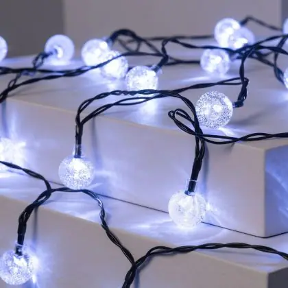 Bright Choice Luci a stringa LED Moonballs ABS 1W 20lm - 850 Bianco Freddo | IP65 - Solar