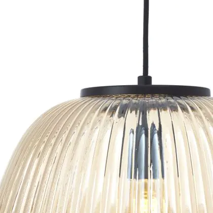 Brilliant Kaizen Luce Pendente Vetro Luce Pendente Metallo Nero Beige | 350mm - Adatto per 1x E27