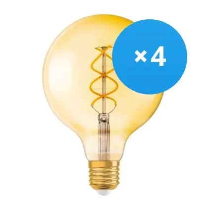 La Confezione Multipack 4x Osram Vintage 1906 LED E27 Globe Filamento Oro 125mm 5W 250lm - 820 Bianco Molto Caldo | Sostitutiva 25W è la perfetta sostituzione per la tua lampada convenzionale 25W con attacco E27 grazie alla sua tecnologia LED. Passare a LED ti offrirà tanti vantaggi!