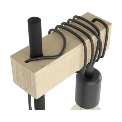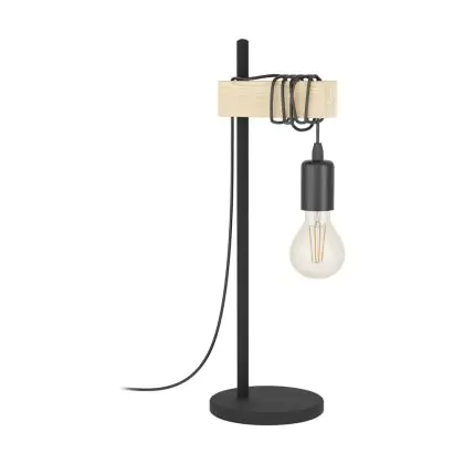 Eglo Lampada Da Tavolo Townshend Acciaio Legna Nero Marrone | IP20 - Adatto per 1x E27