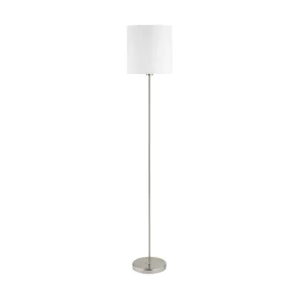 Eglo Lampada da terra Pasteri Acciaio Nichel Satinato Bianca | IP20 - Adatto per 1x E27