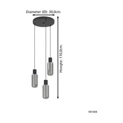 Eglo Luce Pendente Maione Acciaio Nero | IP20 - Adatto per 3x E27