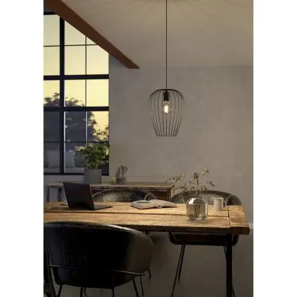 Eglo Luce Pendente Newtown Acciaio Nero | IP20 - Adatto per 1x E27