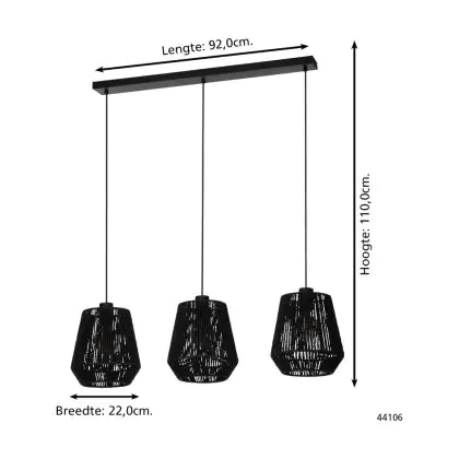 Eglo Luce Pendente Persley Acciaio Nero | IP20 - Adatto per 3x E27