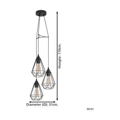 Eglo Luce Pendente Tarbes Acciaio Nero | IP20 - Adatto per 3x E27