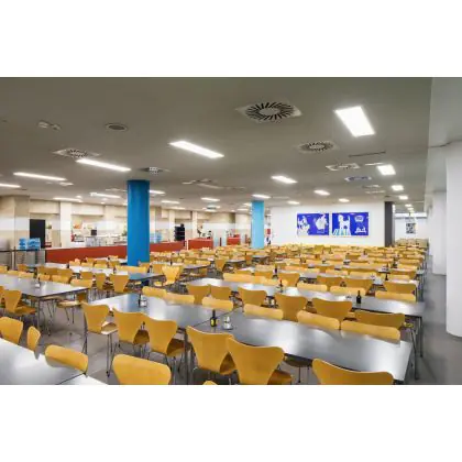 L'indice di abbagliamento unificato (UGR) indica la misura in cui la luce di una lampadina è accecante. Il valore UGR ideale è diverso per ogni applicazione e deve essere conforme alle norme europee (EN 12464-1). Un valore UGR basso indica un basso fattore di abbagliamento. Per gli uffici e le scuole è obbligatoria un'illuminazione con un valore UGR<19, mentre per le aree generali e di passaggio UGR<22.
