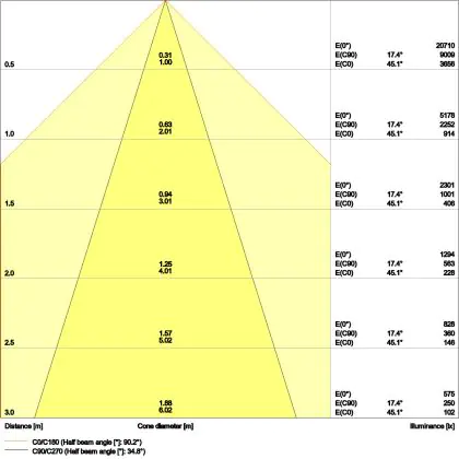 L'apertura del fascio luminoso indica l'angolo del fascio di luce proveniente da una lampada o lampadina. Si misura in gradi (D) e più piccolo è l'angolo, più piccola è l'apertura del fascio di luce.