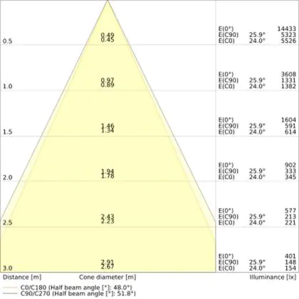 L'apertura del fascio luminoso indica l'angolo del fascio di luce proveniente da una lampada o lampadina. Si misura in gradi (D) e più piccolo è l'angolo, più piccola è l'apertura del fascio di luce.