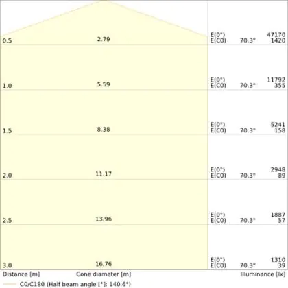 Angolo del Fascio luminoso (gradi) | 45x140 |