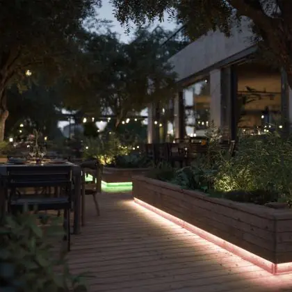Questa fonte di luce può sempre essere utilizzata per l'illuminazione d'accento. Per usarla invece come illuminazione generale bisogna considerare l’emissione luminosa e l’apertura del fascio di luce. Questa striscia LED è lunga 5000 mm e ha una potenza luminosa di 300 Lumen. Dividendo il numero di Lumen per la lunghezza della striscia LED troverai la potenza luminosa per metro. Le strisce LED hanno generalmente un fascio di luce ad ampio angolo, che non fa eccezione per questo articolo: °. Clicca qui per scoprire quanti lumen servono in ogni stanza.