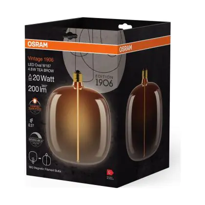 La Osram Vintage 1906 LED E27 Special Filamento Smoke Tall 4.8W 200lm - 818 Bianco Molto Caldo | Dimmerabile - Sostitutiva 25W è la perfetta sostituzione per la tua lampada convenzionale 25W con attacco E27 grazie alla sua tecnologia LED. Passare a LED ti offrirà tanti vantaggi!