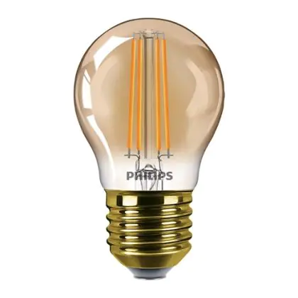 La Philips Classic LED Lustre E27 Sferica Filamento Oro 5W 350lm - 822 Bianco Molto Caldo | Dimmerabile - Sostitutiva 35W è la perfetta sostituzione per la tua lampada convenzionale 32W con attacco E27 grazie alla sua tecnologia LED. Passare a LED ti offrirà tanti vantaggi!