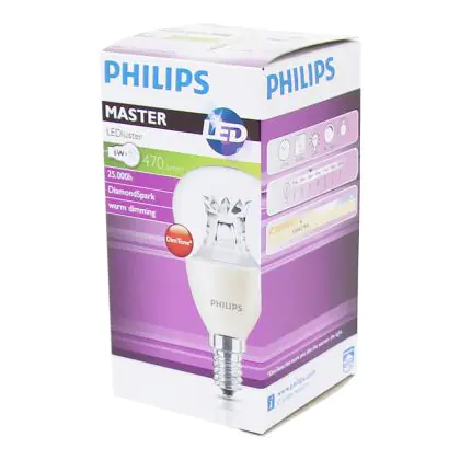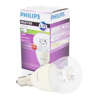 La lampada Philips MASTER LED Lustre E14 Sferica Corona Chiara 5.5W 470lm - 822-827 Dim to Warm | Dimmerabile - Sostitutiva 40W è il sostituto perfetto per le tue vecchie lampade 40W con attacco a vite piccolo E14 grazie alla sua tecnologia LED. Passare a LED ti offrirà molti vantaggi!