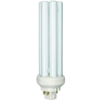 Le Philips PL-T 42W 840 4P (MASTER) sono efficienti lampade fluorescenti compatte a basso contenuto di mercurio. Sono molto efficienti e garantiscono performance ottimali di illuminazione per periodi di accensione brevi o lunghi. Tali lampade fluorescenti compatte sono dotate di attacco GX24q-4 e la base presenta 4 pin (perni). La potenza delle stesse é pari a 42W. Quando sostituisci le tue lampade fluorescenti compatte é fondamentale scegliere le nuove con il medesimo attacco, numero di pin (perni) e potenza di quelle che stai attualmente usando altrimenti non sarai in grado di installarle. Tali lampade fluorescenti assicurano una luce bianca fredda per via della temperatura di colore di 4000K. L'indice di resa cromatica é davvero buono in quanto si colloca nell'intervallo di 80-89Ra. Inoltre, la durata totale media delle lampade stesse é incredibilmente lunga, 13.000 ore!