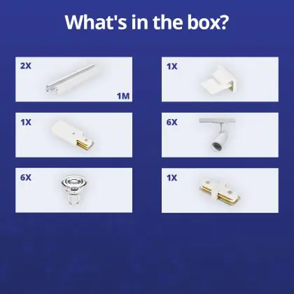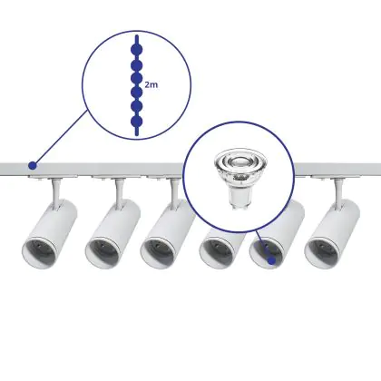 Descrizione Set completo 1-Fase Rail 2 Metro Bianca | incl. 6x Faretti + GU10 2700K 3W Dimmerabile + Tappo Di Chiusura, Connettore di Alimentazione e I-Connettore